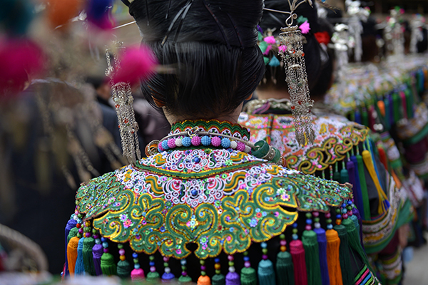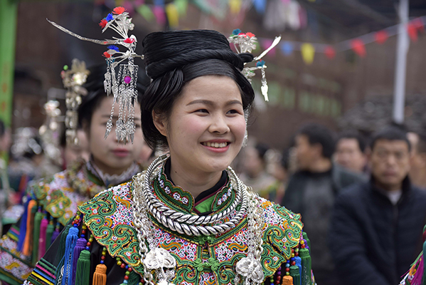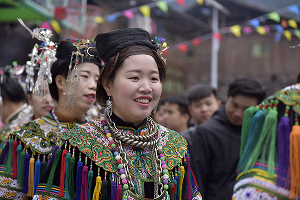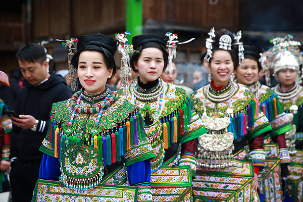 2月8日是大年初四,貴州省黔東南苗族侗族自治州榕江縣朗洞鎮(zhèn)高便村的侗族同胞身穿盛裝,彈唱琵琶歌踩歌堂,歡度新年。