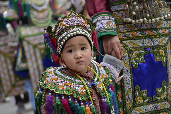 ↑在貴州省榕江縣朗洞鎮(zhèn)高便村,侗族小女孩在進行踩歌堂活動。新華社發(fā)(蔣佐仙 攝)