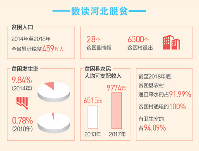 黨的十八大以來(lái),河北省認(rèn)真貫徹落實(shí)習(xí)近平總書記關(guān)于扶貧工作的重要論述,切實(shí)提高政治站位,持續(xù)不懈發(fā)力,加快補(bǔ)齊貧困地區(qū)這個(gè)短板。牢牢堅(jiān)持精準(zhǔn)二字,實(shí)施動(dòng)態(tài)管理,既要說(shuō)清楚有多少人脫了貧,又要說(shuō)清楚怎么脫的貧。堅(jiān)持志智雙扶,因地制宜培育2000個(gè)貧困人口參與度高的特色產(chǎn)業(yè)基地,幫助有勞動(dòng)能力的貧困人口實(shí)現(xiàn)穩(wěn)定可持續(xù)脫貧。加大資源整合和政策傾斜力度,支持10個(gè)深度貧困縣和206個(gè)深度貧困村實(shí)施基礎(chǔ)設(shè)施和基本公共服務(wù)提升工程,全力以赴攻克堅(jiān)中之堅(jiān)、貧中之貧。夯實(shí)脫貧攻堅(jiān)的組織保障,推廣承德市“脫貧攻堅(jiān)黨旗紅”經(jīng)驗(yàn),整頓軟弱渙散村黨組織,選派2.2萬(wàn)名干部駐村幫扶,組織32.5萬(wàn)名干部與貧困戶結(jié)對(duì)幫扶。