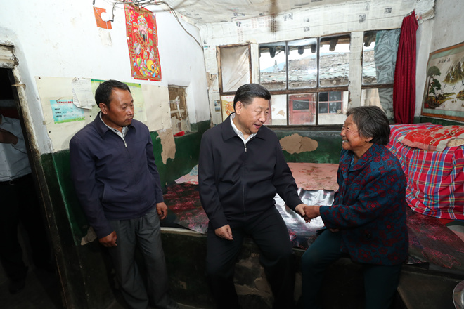 2017年6月21日下午,習(xí)近平到山西省忻州市岢嵐縣趙家洼村特困戶王三女家中看望。