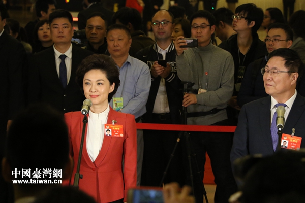 海霞委員回答記者提問。(中國臺(tái)灣網(wǎng) 雍紫薇 攝)