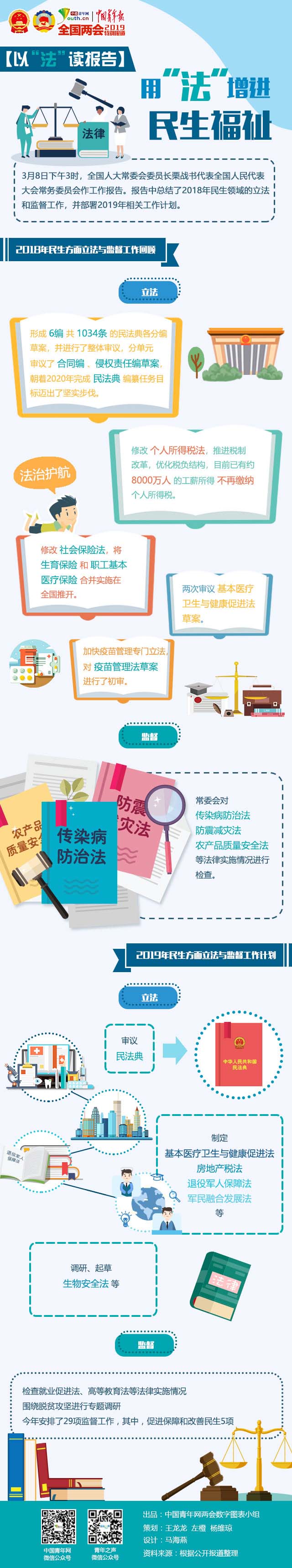 中國青年網(wǎng)北京3月9日電 3月8日下午3時,全國人大常委會委員長栗戰(zhàn)書代表全國人民代表大會常務(wù)委員會作工作報告。報告中總結(jié)了2018年民生領(lǐng)域的立法和監(jiān)督工作,并部署2019年相關(guān)工作計劃。