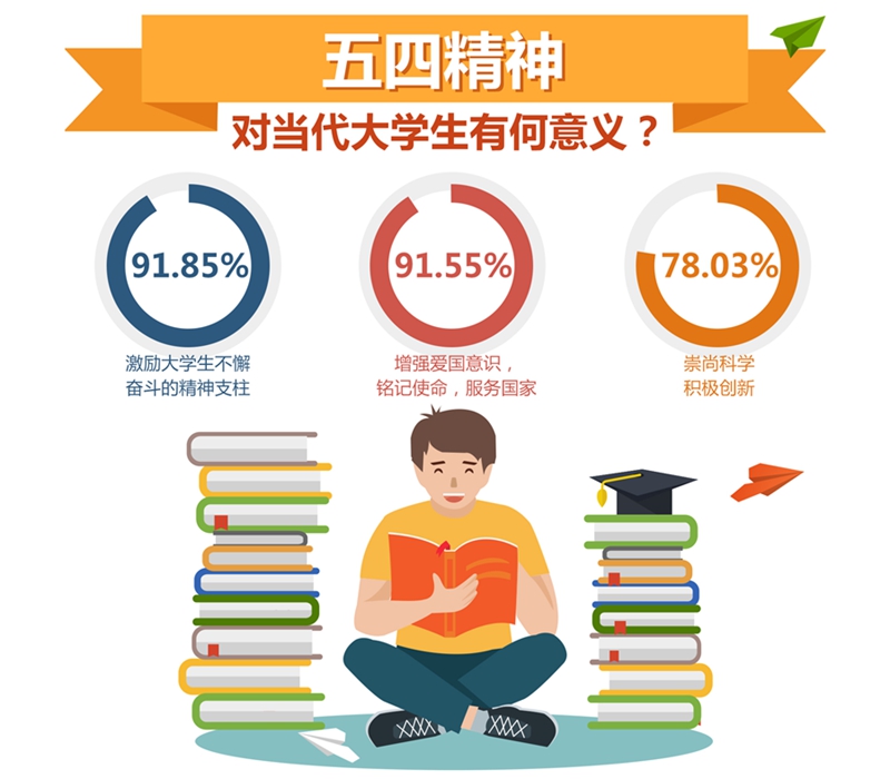 漫步今天的北大校園,我們仿佛又聽到穿越百年歷史時空的聲音。未名湖畔樹木蔥郁,博雅塔旁書香沁人,攜帶書籍的莘莘學(xué)子在校園內(nèi)急步而行。正如北京大學(xué)學(xué)生張棟杰所說:“青春是用寶貴的年華去做一件祖國需要的事,拼盡全力、毫無保留”。91.85%的受訪大學(xué)生認(rèn)為五四精神“是激勵大學(xué)生不懈奮斗的精神支柱”,91.55%的受訪大學(xué)生認(rèn)為五四精神“能增強愛國意識,銘記使命,服務(wù)國家”。他們都認(rèn)為,這個時代可以有小我,但心中一定要有我們的祖國,五四精神永不過時。