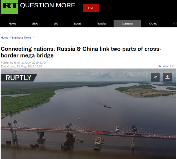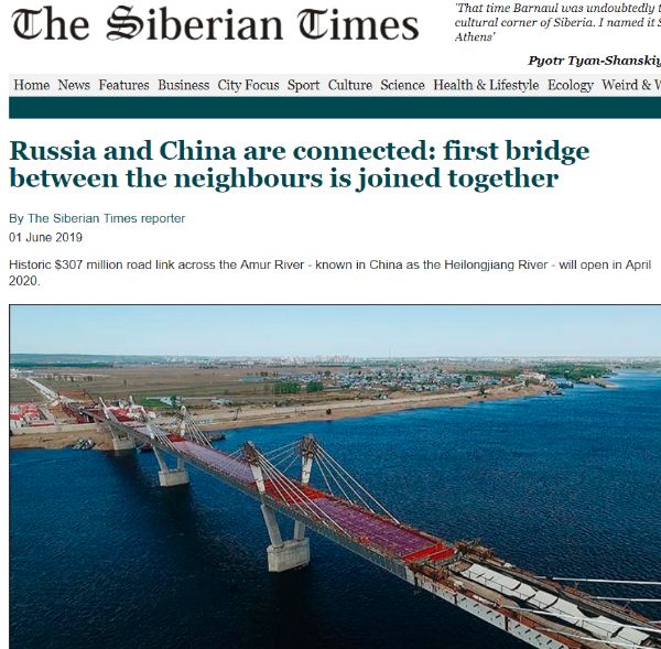 另據(jù)俄羅斯西伯利亞時報網(wǎng)站6月1日報道,一座具有歷史意義的俄中公路橋?qū)⒂?020年4月正式開通。