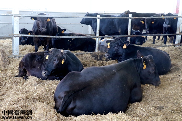 鎮(zhèn)賚縣特色養(yǎng)殖產(chǎn)業(yè)扶貧基地中的和牛。(中國(guó)臺(tái)灣網(wǎng) 尹賽楠 攝)