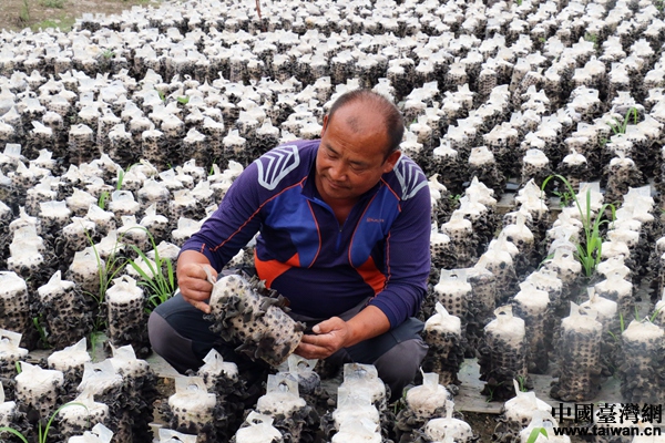 黑木耳種植大戶張守禮悉心照看每一個菌包。(中國臺灣網(wǎng) 尹賽楠 攝)