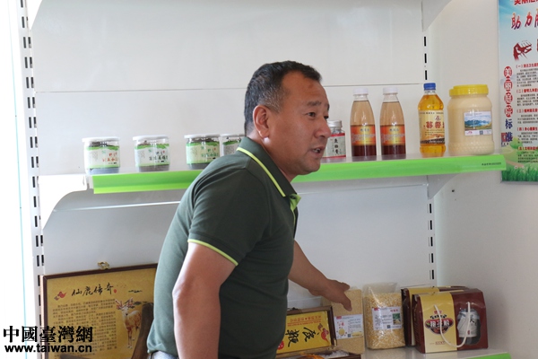 侯志國向采訪團(tuán)介紹村中農(nóng)產(chǎn)品。(中國臺灣網(wǎng) 尹賽楠 攝)