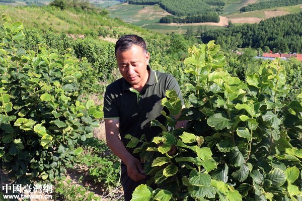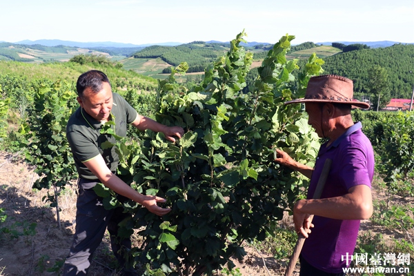 侯志國與村民探討榛子種植問題。(中國臺灣網(wǎng) 尹賽楠 攝)