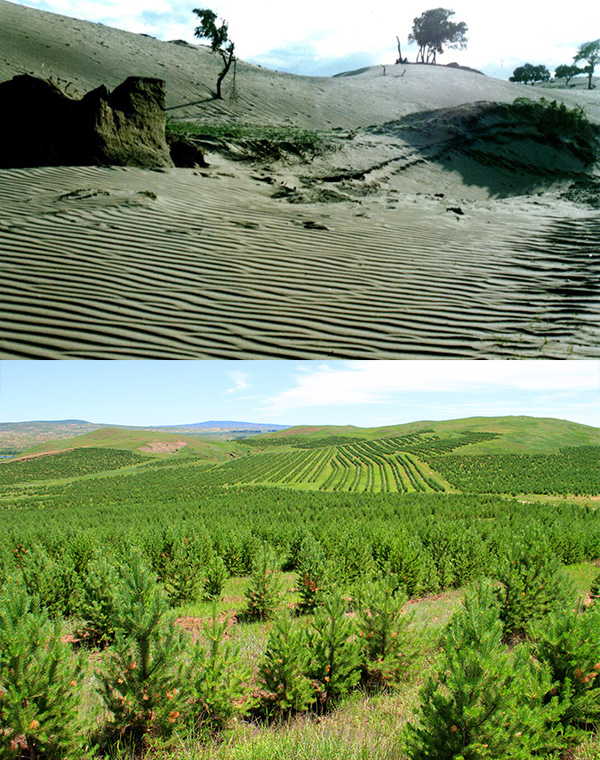 通過近二十年的大規(guī)模生態(tài)建設(shè),多倫縣林地面積由2000年的54萬畝增加到現(xiàn)在的293萬畝,占土地總面積的51%;森林覆蓋率由2000年的6.8%提高到現(xiàn)在的37.9%;項目區(qū)林草植被蓋度由2000年的不足30%提高現(xiàn)在的85%以上。
