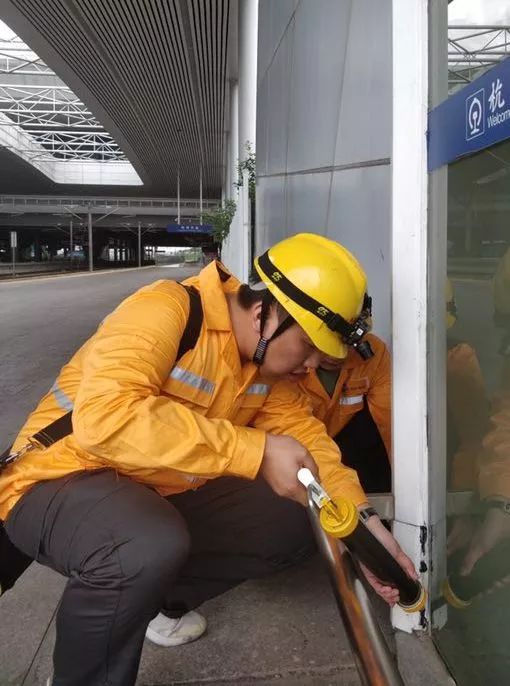 做好杭州東站候車室、站臺軌旁設備 、站名牌、廣告牌、玻璃護欄、燈具照明等的檢查工作