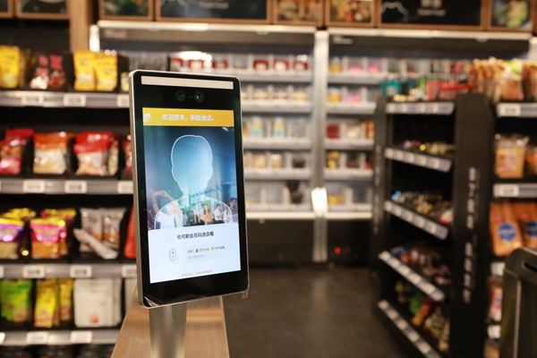 蘇寧首家全場景應(yīng)用全數(shù)字化視覺無人店,通過全球最新的無人門店科技,實現(xiàn)了消費者可以即拿即走,同步支付。張芯蕊 攝