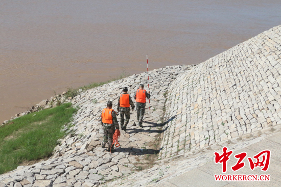 雖然已入秋,李濤還像往常一樣,一大早就在黃河堤壩上來回巡查。“現(xiàn)在還在汛期,一天要仔細巡查兩次才能放心!鼻鍜叩添斅访、修整坍塌備防石垛、填墊水溝浪窩、查看水位……9.5公里長的堤防,34段壩岸,巡查一趟下來要花好幾個小時的時間,李濤身上的衣服往往被汗水濕透。