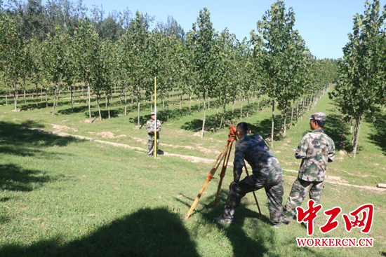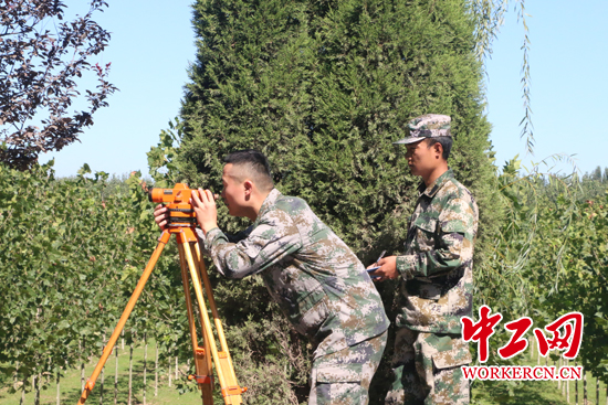 李濤和團隊在進行工程測量。中工網(wǎng)記者 朱晶晶 攝