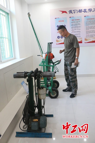 李濤在介紹他參與的發(fā)明、改進機器工具。中工網(wǎng)記者 朱晶晶 攝