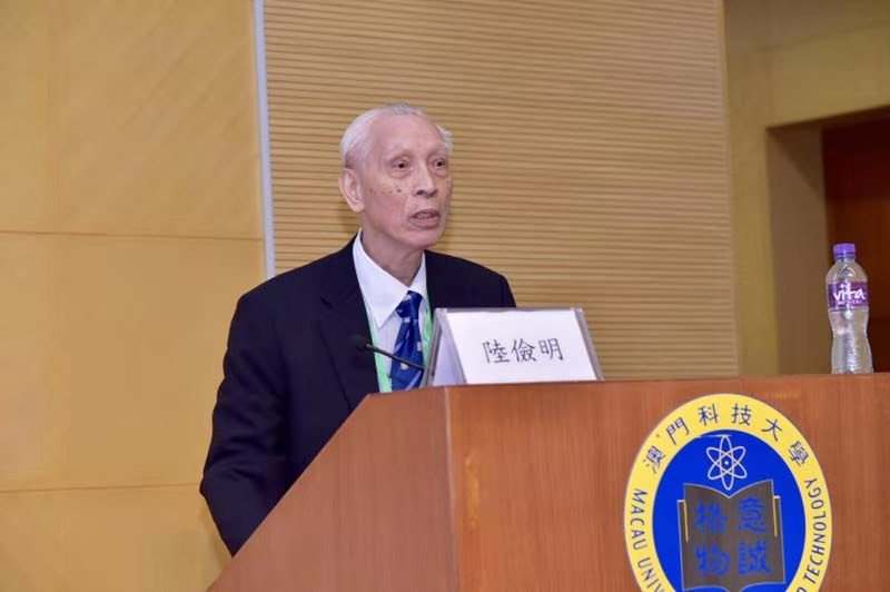 北京大學(xué)陸儉明教授做學(xué)術(shù)報(bào)告《語法受社會心理的影響和制約》。(中國臺灣網(wǎng)發(fā) 李康 攝)