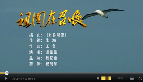 大型電視紀(jì)錄片《祖國在召喚》插曲《如你所愿》MV
