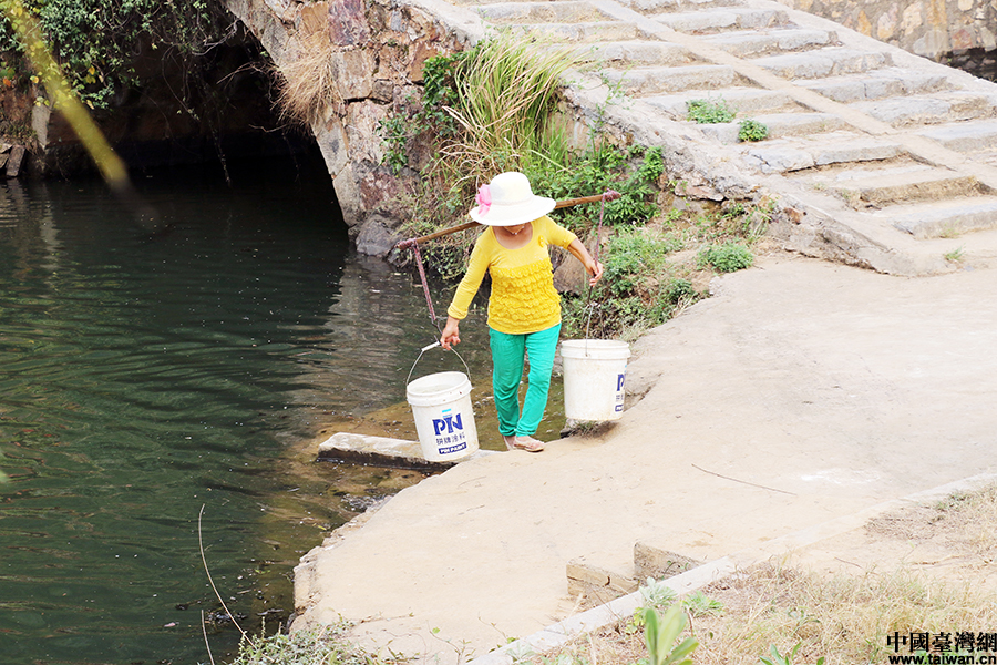 村民挑河水灌溉。(中國(guó)臺(tái)灣網(wǎng) 劉洪羊 攝)