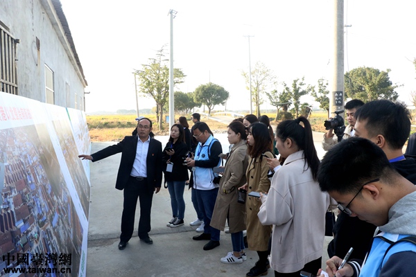 沈橋村黨委副書記的戴利偉向采訪團(tuán)介紹村內(nèi)整治情況。(中國臺灣網(wǎng) 尹賽楠 攝)
