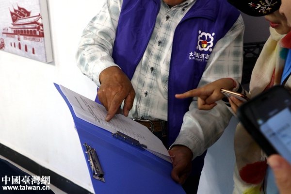 66歲的沈橋村村民王金坤向記者展示志愿者名單。(中國臺灣網(wǎng) 尹賽楠 攝)