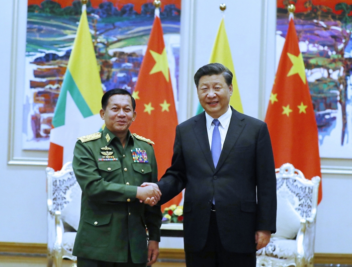 習近平指出,我這次訪問是中國國家主席時隔19年再次對緬甸進行國事訪問,也是我新年伊始首次出訪,體現(xiàn)了當前中緬關系的高水平。中緬建交70年來,無論兩國各自有何變化,雙邊關系有何波瀾,最終都走上了緊密合作、相互支持的正確軌道。雙方一定要維護好、發(fā)展好難能可貴的胞波情誼,推動“一帶一路”框架內務實合作早出成果,惠及人民。發(fā)展中緬關系要靠兩國各界人民協(xié)力合作,也離不開兩軍交流合作。希望總司令和緬甸軍方同中國軍方加強往來,共同推動中緬命運共同體建設。雙方要共同努力,維護邊境地區(qū)和平穩(wěn)定,為促進邊境地區(qū)經(jīng)濟發(fā)展創(chuàng)造良好條件。