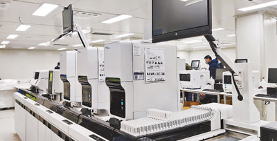 圖為雷神山醫(yī)院醫(yī)技樓的檢驗(yàn)科室。