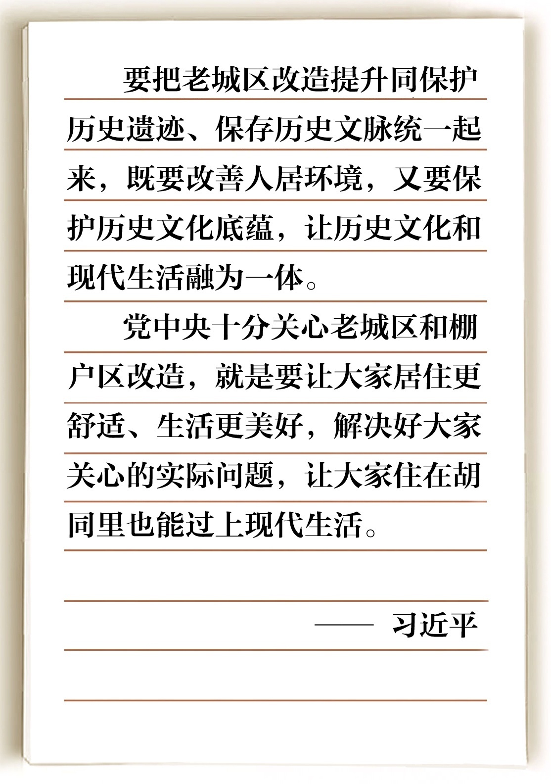 “讓大家住在胡同里也能過上現(xiàn)代生活”,這不僅包括居住條件、環(huán)境衛(wèi)生的改善,也包括文明風氣、健康生活方式的培養(yǎng),還意味著社區(qū)治理和服務的精準化、精細化。既注重保護歷史文化底蘊,又解決好大家關心的實際問題,我們就能讓群眾居住更舒適、生活更美好。