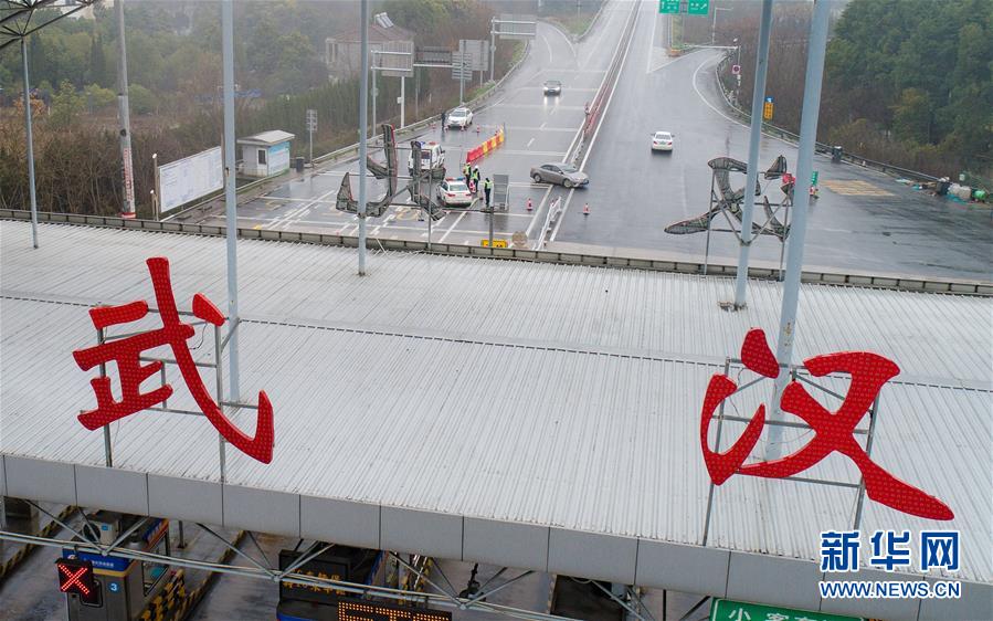 武漢北高速公路收費(fèi)站出城通道已封閉(1月23日攝)。 新華社記者肖藝九攝