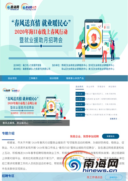 海口線上“春風(fēng)行動(dòng)”暨就業(yè)援助月招聘會(huì)專題頁(yè)面