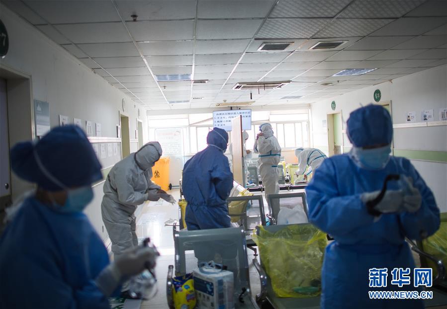2月22日,醫(yī)務人員在武漢市第一醫(yī)院進入隔離病區(qū)前穿戴隔離裝備。新華社記者 肖藝九 攝