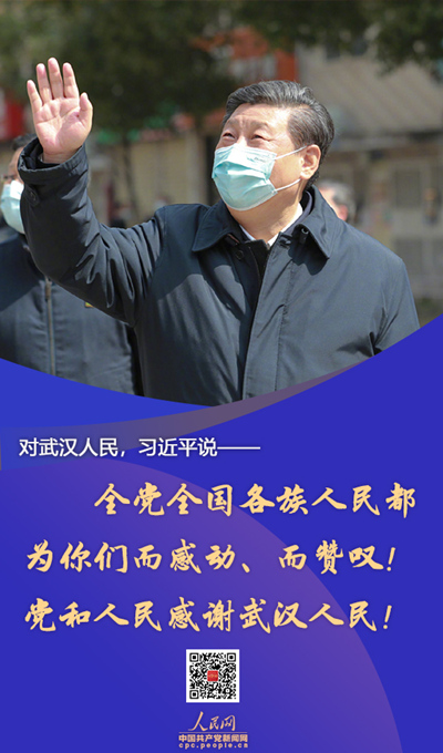 ● 武漢不愧為英雄的城市,武漢人民不愧為英雄的人民,必將通過打贏這次抗擊新冠肺炎疫情斗爭(zhēng)再次被載入史冊(cè)!全黨全國(guó)各族人民都為你們而感動(dòng)、而贊嘆!黨和人民感謝武漢人民!