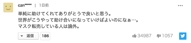 “有很多善良的中國人呀,真的很感謝,不知道你們那邊疫情怎么樣了呢。這樣的捐贈(zèng)確實(shí)幫了日本很大的忙,但希望你們自己也要多加防護(hù)。”