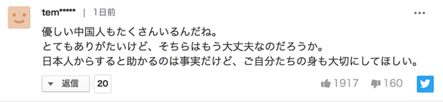許多日本網(wǎng)友在推文下表達(dá)了感謝之意,甚至有人用中文發(fā)表了感謝的評(píng)論。