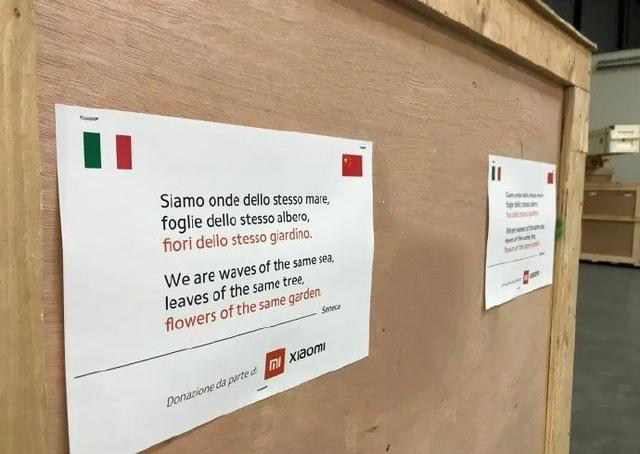 在這批物資上用英語和意大利語印著古羅馬時(shí)代哲學(xué)家賽內(nèi)加的一句話:我們是同一片大海的海浪,同一棵樹上的樹葉,同一座花園里的花朵。