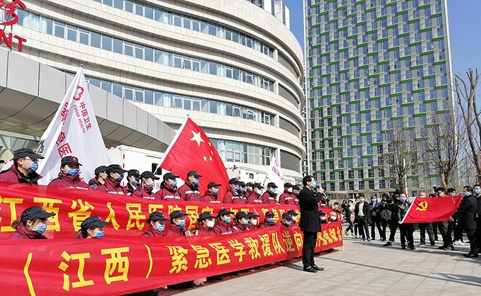 △由41名隊員組成的國家緊急醫(yī)學救援隊(江西)出征支援武漢