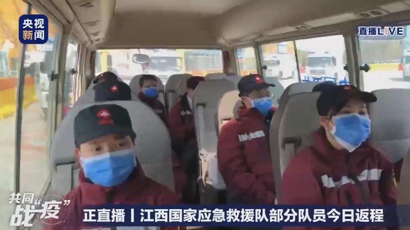 在江西國家應急救援隊部分隊員返程的大巴車上