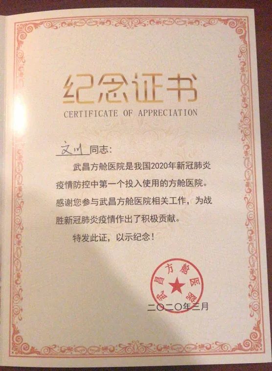 △文川收到的紀念證書