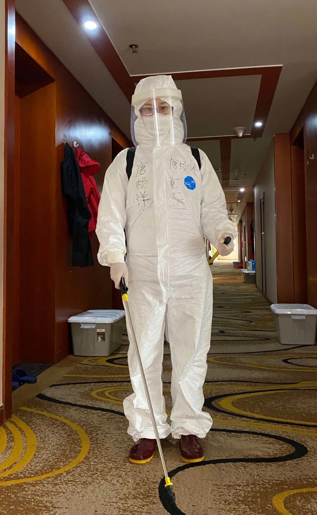 每天清晨,當天空微微亮時,我們“緝毒二人組”就開始一天的消毒工作了,從駐地門口到大廳、到電梯、到過道,每個角落都不放過。因為我們多一分細致,隊友們的健康就多一分保障。