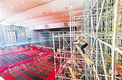 第44屆世界遺產(chǎn)大會主會議廳施工現(xiàn)場。葉義斌攝/光明圖片