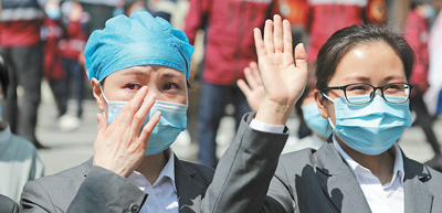 3月17日,甘肅省第二批支援武漢醫(yī)療隊離開位于武漢東西湖的駐地,駐地工作人員深情相送。本報記者 李 舸攝