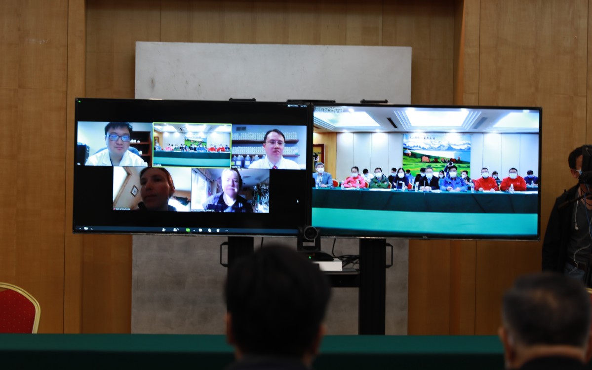 中美中醫(yī)師網(wǎng)絡(luò)交流會上,中央指導組專家張伯禮院士一行和美國中醫(yī)師們,就中醫(yī)治療新冠進行了交流。中國日報 蘇峰 攝