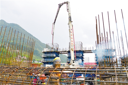 3月26日,工人正抓緊澆筑鄭萬(wàn)高鐵湖北興山段古夫特大橋橋墩。鄭萬(wàn)高鐵是“八縱八橫”高速鐵路網(wǎng)的重要組成部分,興山段現(xiàn)到崗人員1700多人,到崗率90%。鄒遠(yuǎn)景攝(中經(jīng)視覺(jué))