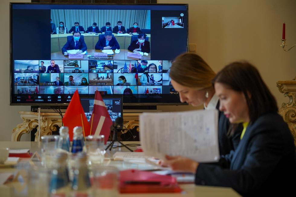 3月13日,在拉脫維亞首都里加,拉脫維亞衛(wèi)生專家在中國(guó)駐拉使館參加視頻會(huì)議。中國(guó)同中東歐17國(guó)當(dāng)日舉行新冠肺炎疫情防控專家視頻會(huì)議,分享和交流疫情防控經(jīng)驗(yàn)及信息。這是中國(guó)秉承人類命運(yùn)共同體理念,為全球公共衛(wèi)生安全事業(yè)作貢獻(xiàn)的又一重要舉措。新華社發(fā)(亞尼斯 攝)