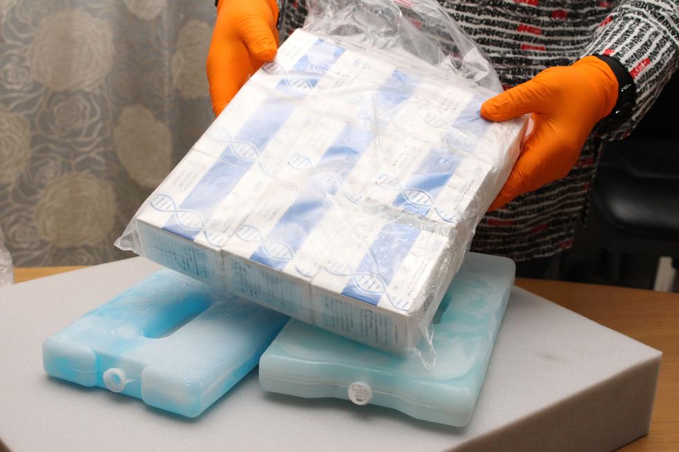 這是3月19日在貝寧經(jīng)濟(jì)首都科托努舉行的捐贈(zèng)儀式上拍攝的中國(guó)向貝寧衛(wèi)生部捐贈(zèng)的試劑盒。新華社發(fā)(塞拉芬攝)