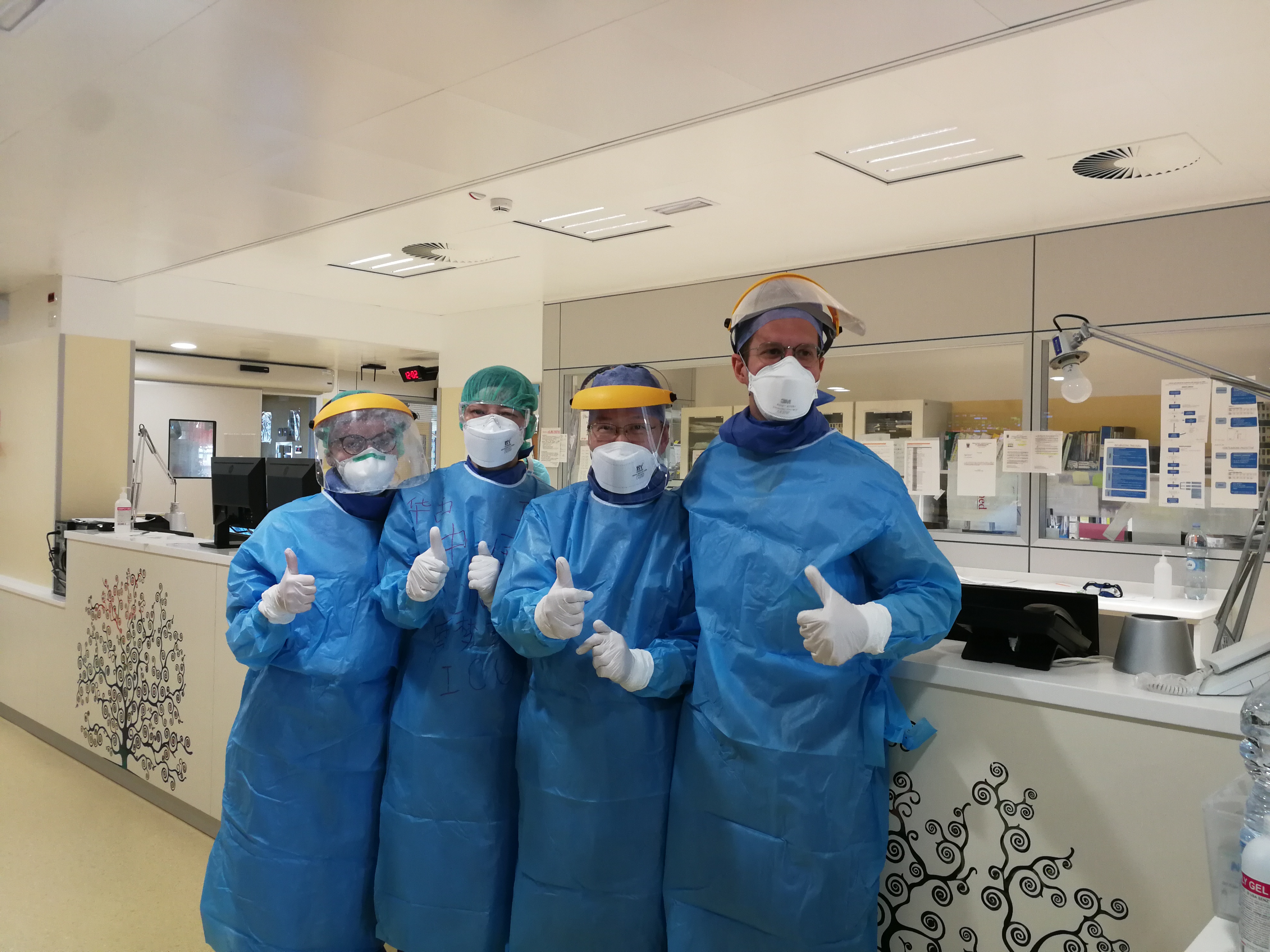 3月18日,在意大利帕多瓦,中國(guó)抗疫醫(yī)療專家組與當(dāng)?shù)蒯t(yī)生合影。中國(guó)抗疫醫(yī)療專家組在帕多瓦開(kāi)展工作,幫助當(dāng)?shù)貞?yīng)對(duì)新冠肺炎疫情。新華社發(fā)(中國(guó)抗疫醫(yī)療專家組供圖)