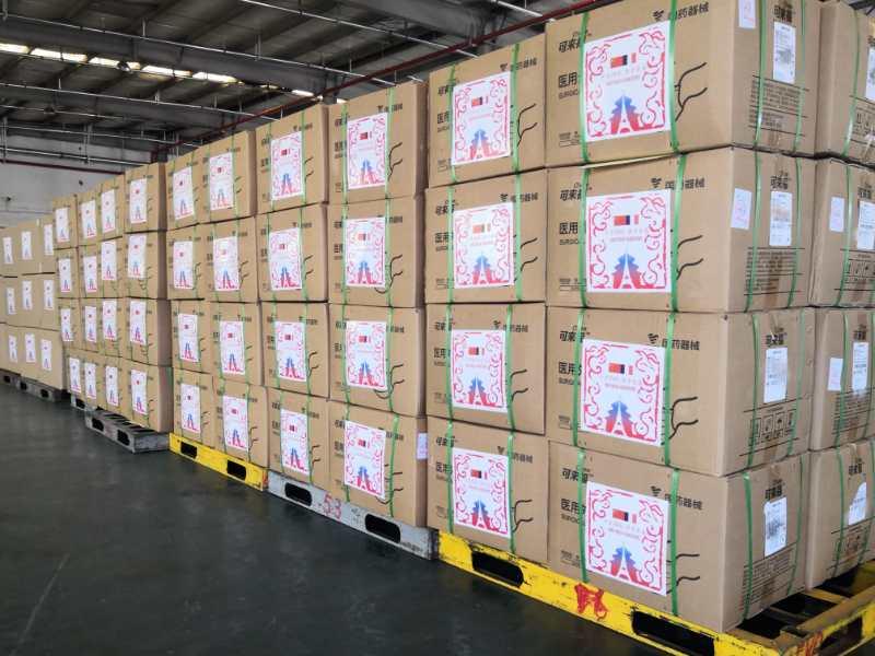 這是3月16日在中國(guó)上海拍攝的中國(guó)政府向法國(guó)提供的醫(yī)療物資。2020年3月18日,在法國(guó)因疫情實(shí)行全國(guó)隔離的次日,中國(guó)政府向法國(guó)提供的醫(yī)療物資援助運(yùn)抵巴黎戴高樂(lè)機(jī)場(chǎng)。新華社發(fā)