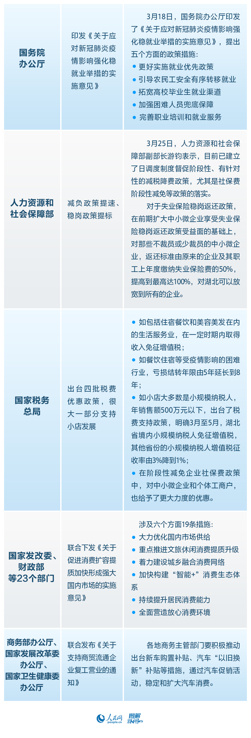 目前,我國(guó)疫情防控已經(jīng)取得了階段性重要成效。為精準(zhǔn)落實(shí)疫情防控和復(fù)工復(fù)產(chǎn)各項(xiàng)舉措,奮力實(shí)現(xiàn)今年經(jīng)濟(jì)社會(huì)發(fā)展目標(biāo)任務(wù),中央及各省區(qū)市都出臺(tái)了相關(guān)政策,從穩(wěn)定就業(yè)、扶持中小企業(yè)、提振消費(fèi)等方面促進(jìn)經(jīng)濟(jì)社會(huì)發(fā)展。