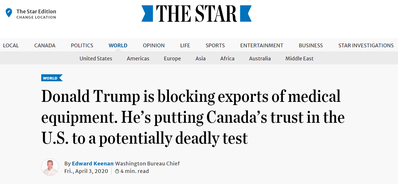 加拿大《多倫多星報(bào)》報(bào)道稱(chēng),這一舉動(dòng)會(huì)讓加拿大和美國(guó)之間的信任面臨致命考驗(yàn)。加拿大公共服務(wù)和采購(gòu)部長(zhǎng)安妮塔·阿南德表示,美國(guó)禁止3M出口口罩這一舉措,意味著同樣的政策可適用于呼吸機(jī)、疫苗等所有產(chǎn)品的供應(yīng)。在加拿大經(jīng)濟(jì)與美國(guó)經(jīng)濟(jì)融合了三十多年之后,這種風(fēng)險(xiǎn)從未像現(xiàn)在這樣清晰。