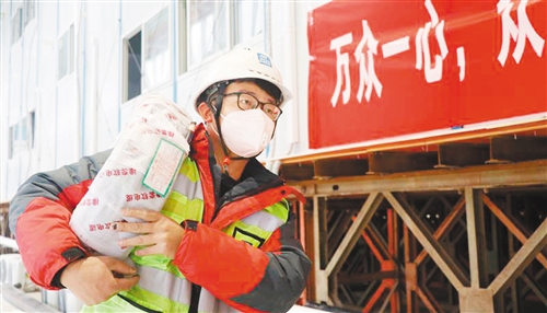中建三局基建投公司雷神山醫(yī)院項目建設(shè)者匡文博在現(xiàn)場搬運物資。(資料照片)