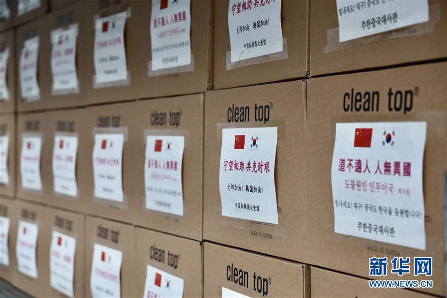 2月27日,在韓國首爾,中國駐韓國大使館緊急籌備的醫(yī)用口罩準(zhǔn)備運(yùn)往大邱。箱子外包裝上寫著:“道不遠(yuǎn)人 人無異國”“守望相助 共克時(shí)艱”等支持的話語。 新冠肺炎疫情發(fā)生以來,習(xí)近平主席時(shí)刻關(guān)注國內(nèi)外疫情形勢,高度重視抗疫國際合作,多次作出重要指示批示,頻頻開展元首外交,從構(gòu)建人類命運(yùn)共同體高度,親自推動(dòng)疫情防控國際合作。 新華社發(fā)(中國駐韓國大使館供圖)