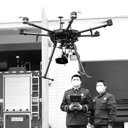 4月4日,湖北省十堰市鄖陽區(qū)消防救援大隊(duì)兩名消防操作員正在試飛新裝備的無人機(jī)。周家山攝/光明圖片